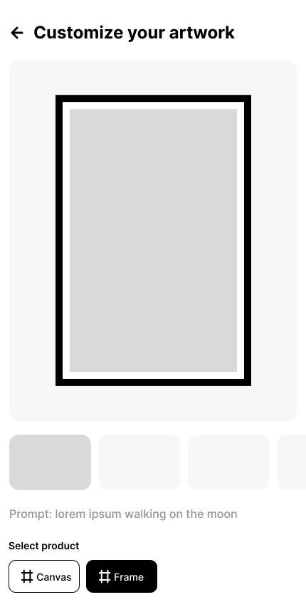 Une fois l'œuvre d'art générée, les clients peuvent choisir de l'acheter sous forme d'impression encadrée ou sur une variété de produits, rendant l'expérience d'achat plus engageante et personnalisée.